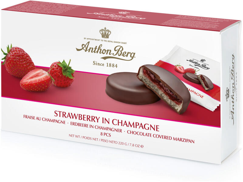 Anthon Berg Csokoládé marcipánnal és eperrel pezsgőben 220g (5774540984056)