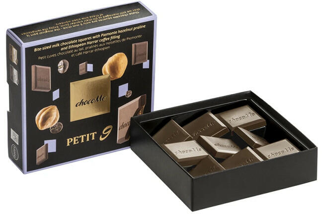 chocoMe Falatnyi tejcsokoládé lapocskák piemonte-i mogyoró praliné és etióp Harrar kávé töltelékkel (50 g) (díjnyertes)