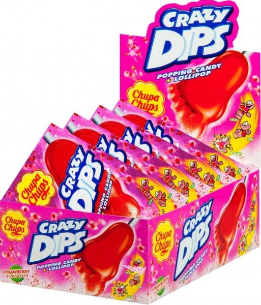 Chupa Chups Crazy Dips Strawberry nyalóka 14g karton 24 db