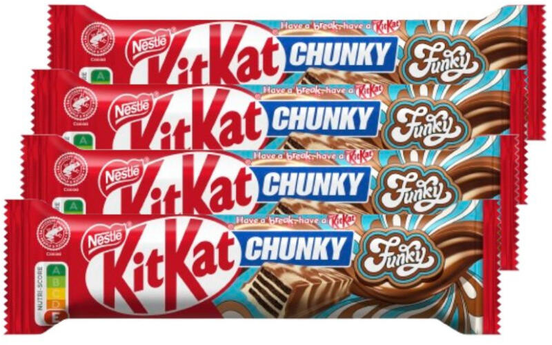 KITKAT Chunky Funky ropogós kakaós ostya tejcsokoládéban és fehér bevonóban (4x40 g)